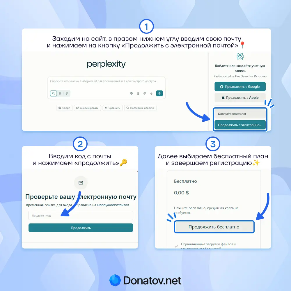 ㅤОформить подписку Perplexity AI можно легко и безопасно через Donatov.net. Подписки Pro, Max и корпоративные решения активируются по входу в ваш аккаунт — достаточно указать e-mail, подтвердить код и дождаться автоматической активации. Мы используем только официальные методы подключения, поэтому подписка надёжно закрепляется за вашим аккаунтом и не исчезает. Если вам нужен быстрый, точный и современный ИИ-поисковик, который объединяет анализ, исследования и генерацию, вы можете купить Perplexity AI в России и СНГ и получить доступ ко всем функциям сразу после оформления.